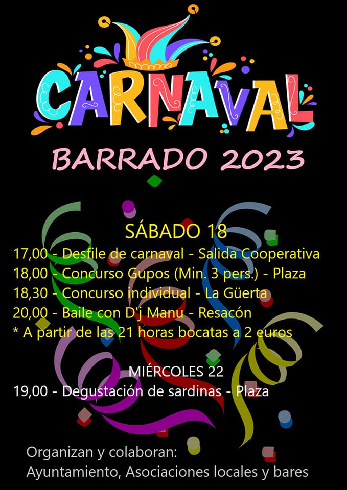 CARNAVAL 2023 20 febrero 2023 Cartel del Carnaval 2023. Esperamos que disfrutéis de las propuestas. ¡Feliz Carnaval 2023! Galería imágenes
