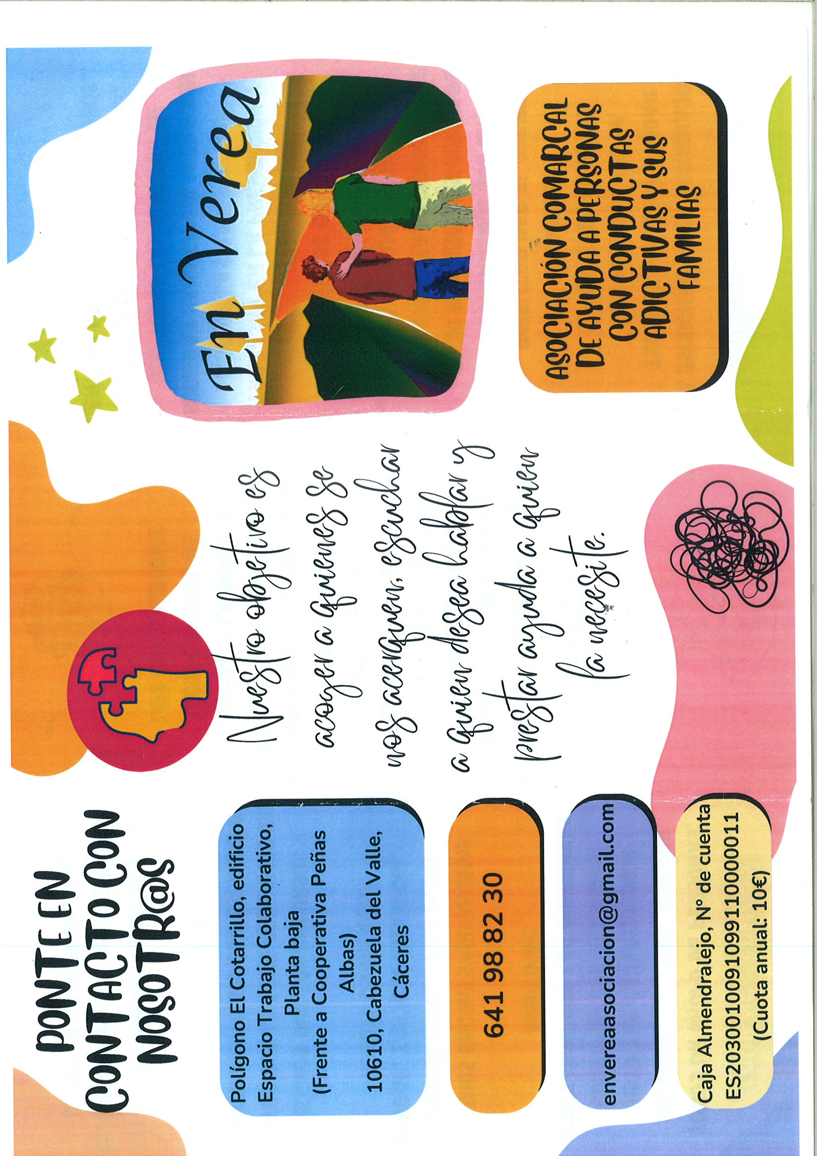 Si necesitas ayuda puedes ponerte en contacto con el número de teléfono móvil: 641988230 o por email envereaasociacion@gmail.com